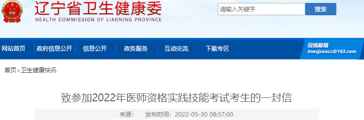遼寧省衛(wèi)健委發(fā)布了致參加2022年醫(yī)師資格考試實(shí)踐技能考試考生的一封信,提醒各位考生及時(shí)查看最新通知。