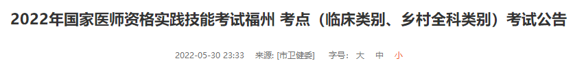 2022年醫(yī)師資格實(shí)踐技能考試福州考點(diǎn)(臨床類別、鄉(xiāng)村全科類別)考試公告