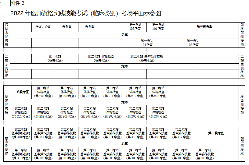 福州考點2022年醫(yī)師實踐技能考試(臨床類別)考場平面示意圖