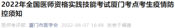 2022年醫(yī)師資格實(shí)踐技能考試廈門(mén)考點(diǎn)考生疫情防控須知