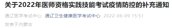 通遼考點(diǎn)關(guān)于2022年醫(yī)師資格實(shí)踐技能考試疫情防控的補(bǔ)充通知