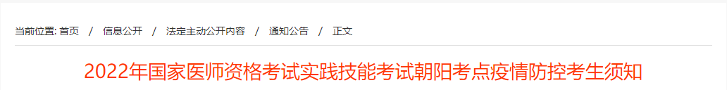 錦州考點(diǎn)轉(zhuǎn)發(fā)2022年國(guó)家醫(yī)師資格考試實(shí)踐技能考試朝陽(yáng)考點(diǎn)疫情防控考生須知