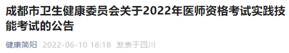 成都市簡陽考點(diǎn)關(guān)于2022年醫(yī)師資格考試實踐技能考試的公告