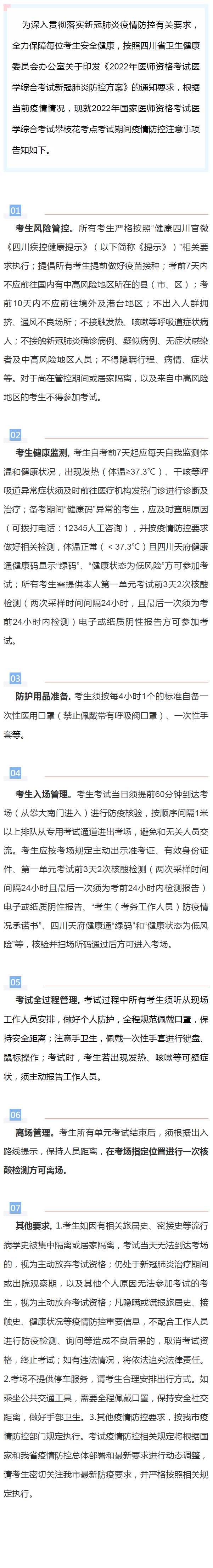 @攀枝花考點考生,2022年國家醫(yī)師資格考試醫(yī)學(xué)綜合考試疫情防控注意事項請查收!