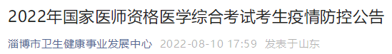 山東淄博考點(diǎn)2022年國(guó)家醫(yī)師資格醫(yī)學(xué)綜合考試考生疫情防控公告