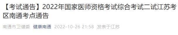【考試通告】2022年國家醫(yī)師資格考試綜合考試二試江蘇考區(qū)南通考點通告