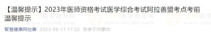 2023年醫(yī)師資格考試醫(yī)學(xué)綜合考試阿拉善盟考點(diǎn)考前溫馨提示