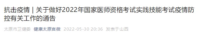 太原市關(guān)于做好2022年國家醫(yī)師資格考試實踐技能考試疫情防控有關(guān)工作的通告