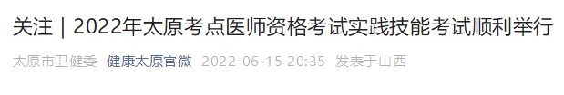 2022年太原考點醫(yī)師資格考試實踐技能考試順利舉行,醫(yī)學教育網編輯為您整理了以下相關信息,具體內容如下,希望可以對您有所幫助: