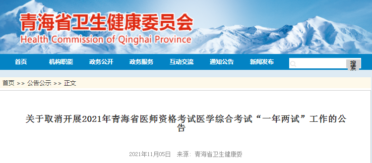 關(guān)于取消開(kāi)展2021年青海省醫(yī)師資格考試醫(yī)學(xué)綜合考試“一年兩試”工作的公告