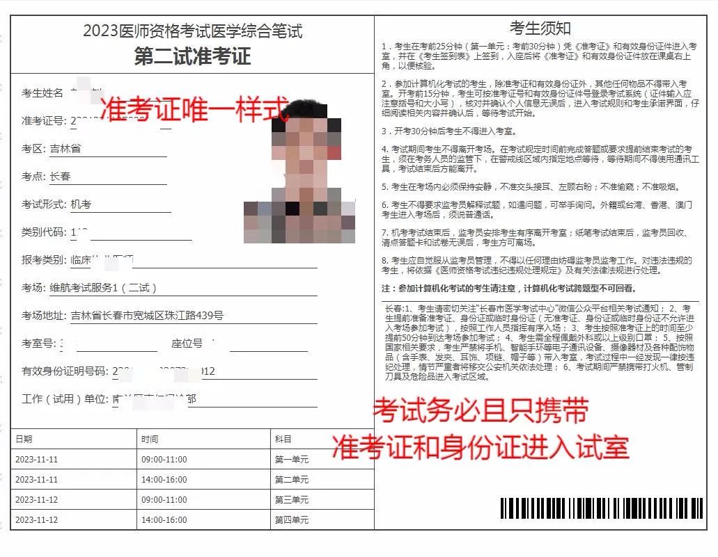 吉林長春考點2024年醫(yī)師資格考試“一年兩試”第二試考試考生須知