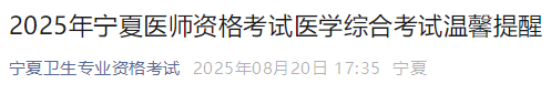 2025年寧夏醫(yī)師資格考試醫(yī)學(xué)綜合考試溫馨提醒公布啦!請(qǐng)相關(guān)考生及時(shí)查看,提前做好應(yīng)試準(zhǔn)備!