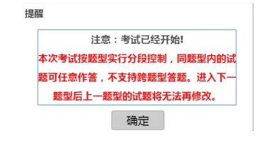 考試過程中,當(dāng)發(fā)生試題分段切換時,系統(tǒng)會繼續(xù)提醒: