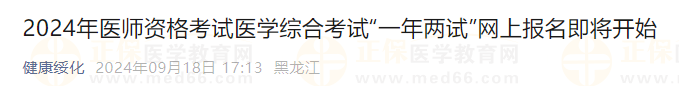黑龍江綏化考點(diǎn)2024年醫(yī)師資格考試“一年兩試”網(wǎng)上報(bào)名繳費(fèi)9月18日開始