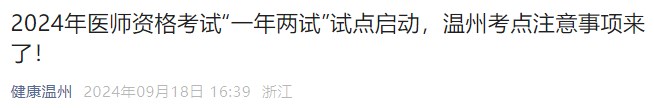 2024年醫(yī)師資格考試“一年兩試”試點啟動,溫州考點注意事項來了!