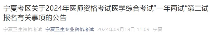 2024年在寧夏考區(qū)已報考當(dāng)年醫(yī)師資格考試,通過當(dāng)年實踐技能考試(含2023年實踐技能成績兩年有效考生),但未通過第一次醫(yī)學(xué)綜合考試,且無違紀(jì)違規(guī)行為的(含第一次醫(yī)學(xué)綜合考試缺考與未繳納第一次醫(yī)學(xué)綜合考試費用考生)可報名參加第二次醫(yī)學(xué)綜合考試。