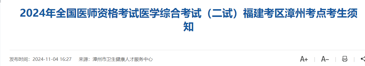 2024年全國醫(yī)師資格考試醫(yī)學綜合考試(二試)將于11月9日-10日舉行。為做好福建考區(qū)考試工作,現(xiàn)將有關(guān)事項公告如下,請各位考生知悉。