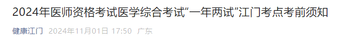 廣東江門2024醫(yī)師資格“一年兩試”考生速看考前須知及考場安排!
