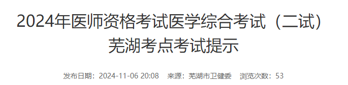 安徽蕪湖2024年醫(yī)師資格“一年兩試”考生速看考場安排!請相關考生做好二試應試準備!