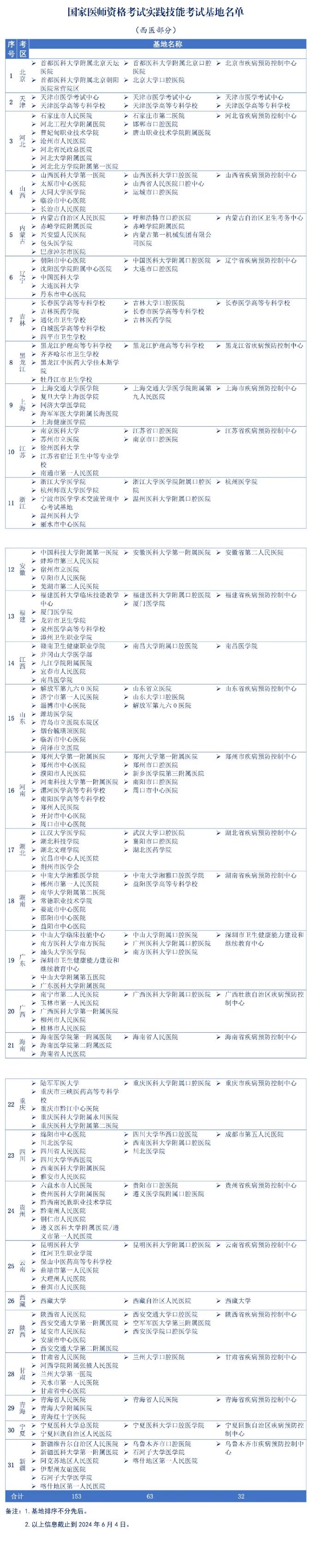 國(guó)家醫(yī)學(xué)考試網(wǎng)官方發(fā)布國(guó)家醫(yī)師資格考試實(shí)踐技能考試基地名單,截止2024年6月,官方公布了31個(gè)考區(qū),共247個(gè)國(guó)家考試基地,具體如下: