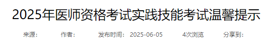 根據(jù)《國(guó)家衛(wèi)生健康委員會(huì)醫(yī)師資格考試委員會(huì)公告》,2025年6月14日至25日期間將舉行醫(yī)師資格考試實(shí)踐技能考試。為確保廣大考生順利參加考試,現(xiàn)就考試有關(guān)事宜提醒如下: