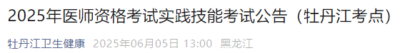 為做好2025年國家醫(yī)師資格考試實踐技能考試工作,現(xiàn)將牡丹江考點醫(yī)師資格考試實踐技能考試有關(guān)事宜公告如下: