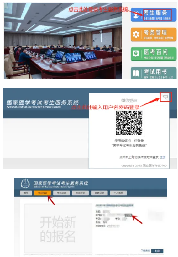廣東省各位考生可于8月15日10時(shí)起,登錄國(guó)家醫(yī)學(xué)考試網(wǎng)(https://www.nmec.org.cn/),進(jìn)入“考生服務(wù)”,掃描二維碼或輸入用戶名和密碼,進(jìn)入系統(tǒng)自行打印準(zhǔn)考證,考生的具體考試時(shí)間、地點(diǎn)以準(zhǔn)考證為準(zhǔn)。