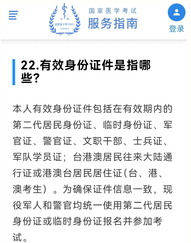 為避免因證件問題影響您正常參考,請(qǐng)務(wù)必?cái)y帶在有效期內(nèi)的第二代身份證等有效身份證件(詳見下圖)和紙質(zhì)準(zhǔn)考證。進(jìn)入校園時(shí),工作人員將對(duì)您的這兩種證件進(jìn)行核驗(yàn),只有兩證齊全且信息一致方可入校。進(jìn)入考場時(shí),監(jiān)考老師將再次核查相關(guān)證件,請(qǐng)您提前準(zhǔn)備好相關(guān)證件并妥善保管,避免遺失或損壞。