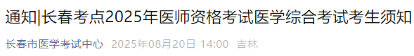 吉林長春2025年醫(yī)師資格綜合筆試考生速看考場安排|考生要求!以下為長春考點官方通知,請相關(guān)考生按時打印準(zhǔn)考證,提前確認(rèn)好考場安排及考生須知!