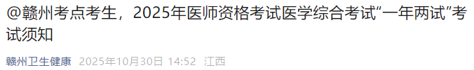 @贛州考點(diǎn)考生,2025年醫(yī)師資格考試醫(yī)學(xué)綜合考試“一年兩試”考試須知