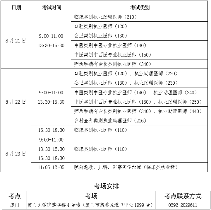 2020年全國(guó)醫(yī)師資格醫(yī)學(xué)綜合考試福建考區(qū)廈門考點(diǎn)考生須知