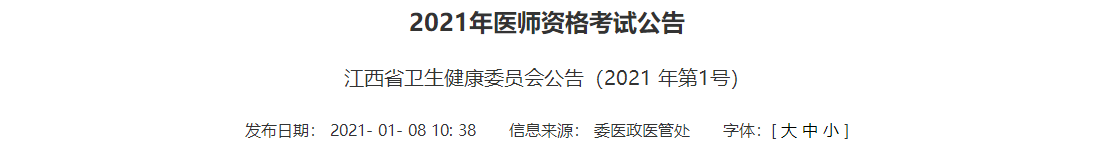 通知原文:江西考區(qū)2021年國家醫(yī)師資格考試報名/現(xiàn)場審核/考試時間公告發(fā)布!