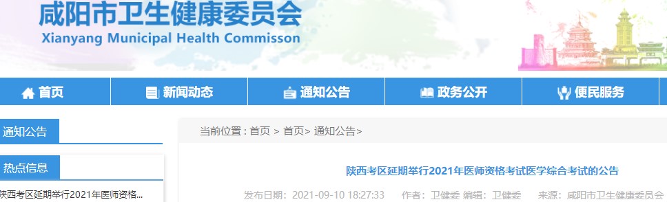 咸陽考點發(fā)布陜西考區(qū)延期舉行2021年醫(yī)師資格考試醫(yī)學(xué)綜合考試的公告
