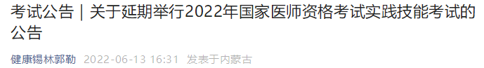 錫林郭勒考試公告|關(guān)于延期舉行2022年國家醫(yī)師資格考試實(shí)踐技能考試的公告