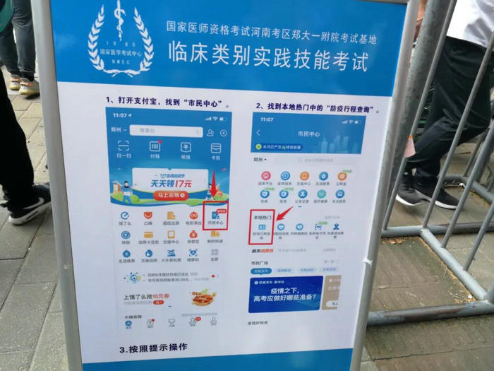 有讀者咨詢怎樣查詢行程碼,其實在支付寶就可以查詢。打開支付寶,進入市民中心,打開疫情服務或者防疫行程查詢,輸入手機號碼和驗證碼就可以查詢行程。不會使用也沒關系,在考場門口會有工作人員指導查詢。