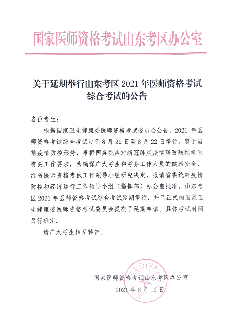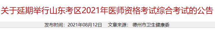 德州衛(wèi)健委發(fā)布延期舉行2021年醫(yī)師資格考試綜合考試的公告