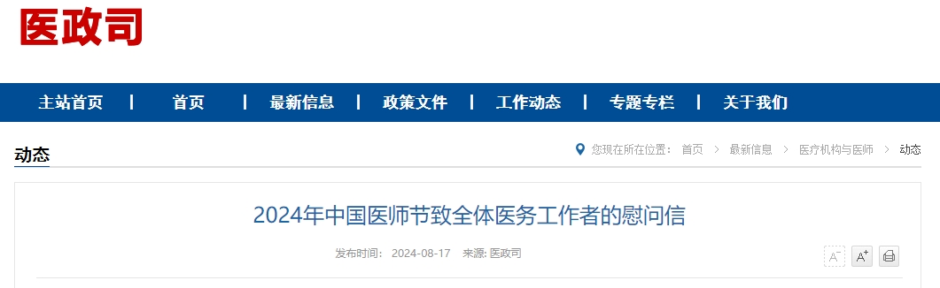 國家衛(wèi)健委醫(yī)政司:2024年中國醫(yī)師節(jié)致全體醫(yī)務工作者的慰問信