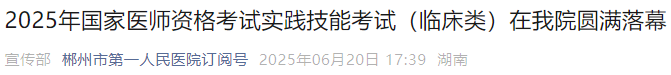2025年臨床醫(yī)師實(shí)踐技能考試(湖南郴州)共2921名考生參加考試,以下為官方報(bào)道內(nèi)容: