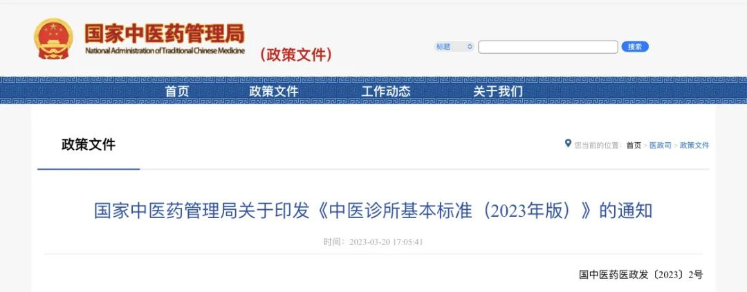 - · 國(guó)家中醫(yī)藥管理局關(guān)于印發(fā)《中醫(yī)診所基本標(biāo)準(zhǔn)(2023年版)》的通知