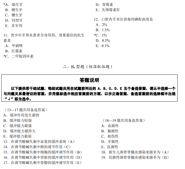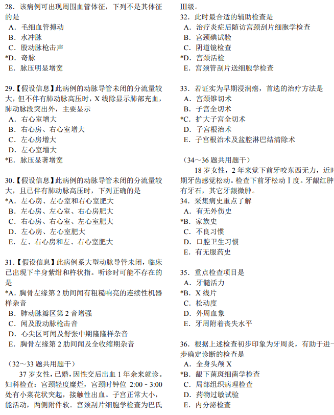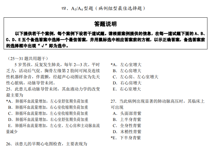 醫(yī)學(xué)綜合考試全部采用選擇題形式。各類選擇題均由題干和選項兩部分組成。題干是試題的主體,可由一段短語、問句或不完全的陳述句組成,也可由一段病例、圖表、照片或其它臨床資料來表示;選項由可供選擇的詞組或短句組成,也稱備選答案。