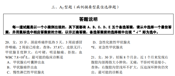 2021年全國西醫(yī)類醫(yī)師資格醫(yī)學(xué)綜合考試題型示例