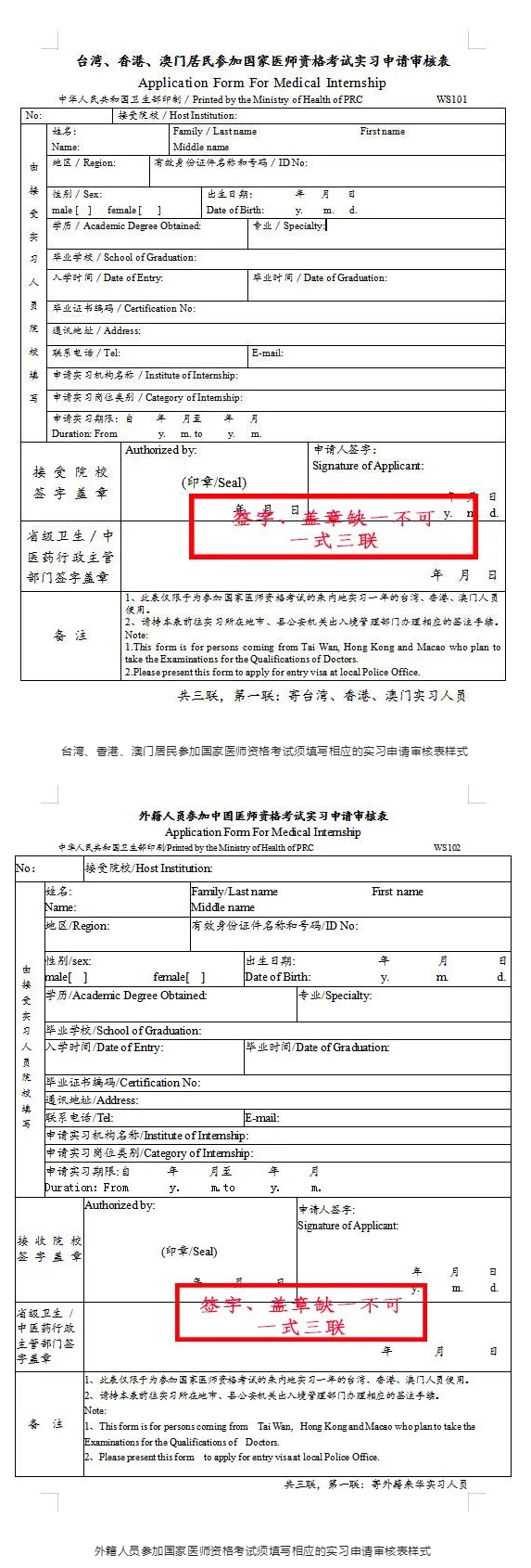11、臺灣、香港、澳門居民、外籍人員參加國家醫(yī)師資格考試須填寫相應(yīng)的實(shí)習(xí)申請審核表,樣式如圖,請登錄國家醫(yī)學(xué)考試網(wǎng)考生服務(wù)系統(tǒng)下載;