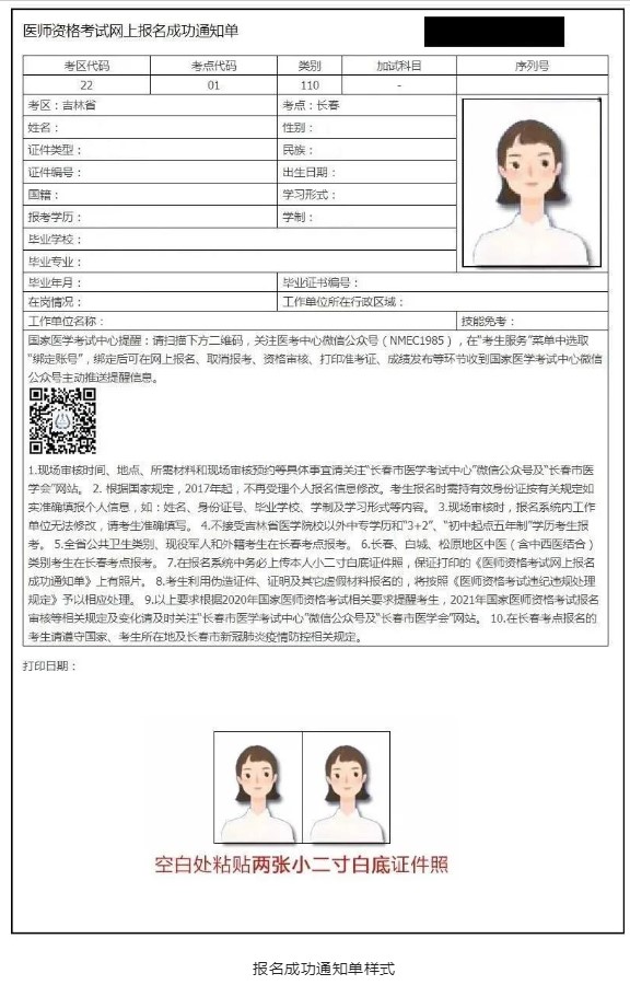 1、《網(wǎng)上報名成功通知單》原件1份,并在下方粘貼兩張小二寸白底照片;