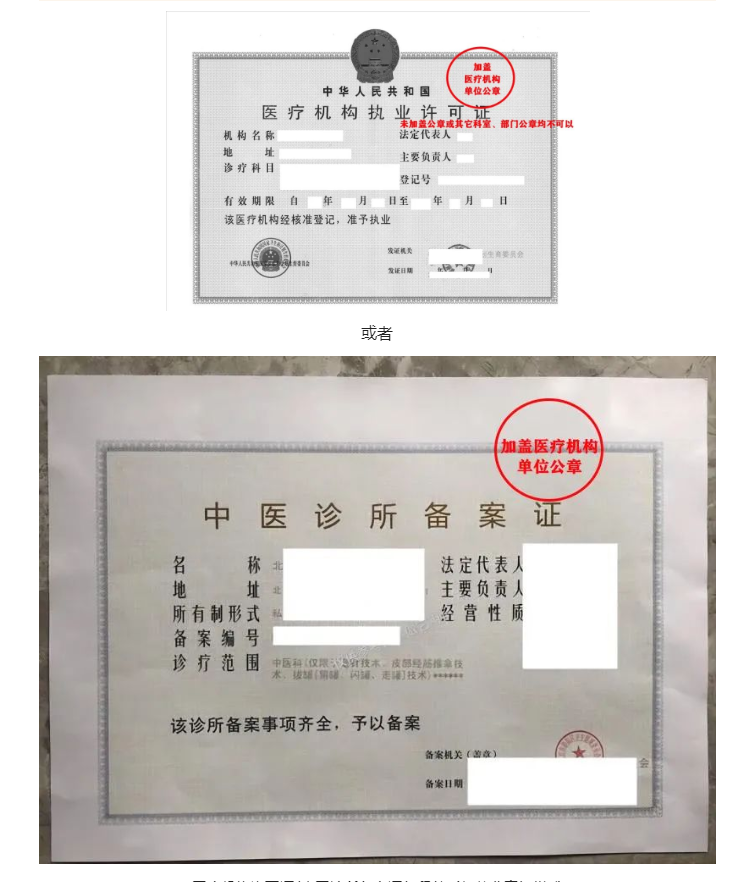 醫(yī)療機構許可證/中醫(yī)診所備案證復印件(加蓋公章)樣式