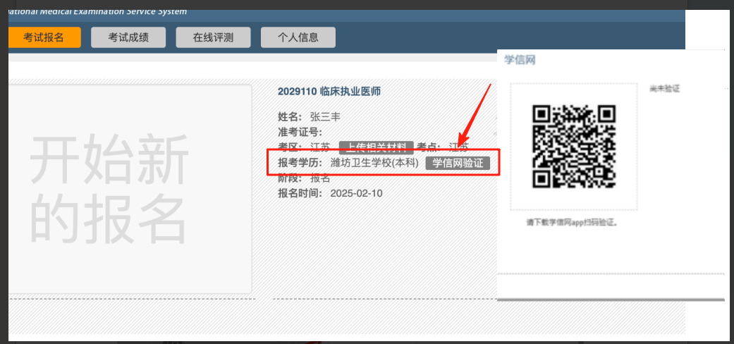 (注:為方便考生,以往報(bào)名參加過醫(yī)考且已進(jìn)行學(xué)信網(wǎng)比對的考生,無需掃碼驗(yàn)證)