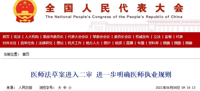 醫(yī)師法草案進(jìn)入二審,進(jìn)一步明確醫(yī)師執(zhí)業(yè)規(guī)則,推進(jìn)多點執(zhí)業(yè)!6月7日,十三屆全國人大常委會第二十九次會議聽取了全國人大憲法和法律委員會副主任委員的關(guān)于醫(yī)師法草案修改情況的匯報。