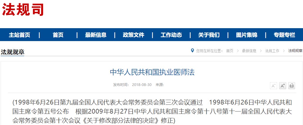 相關(guān)閱讀:中華人民共和國醫(yī)師法全文七章67條