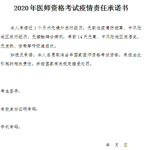 河南考區(qū)2020年醫(yī)師資格考試疫情責任承諾書