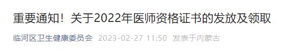 巴彥淖爾市臨河區(qū)2022年醫(yī)師資格證書(shū)的發(fā)放及領(lǐng)取通知