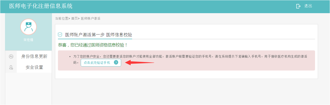 (2)激活賬戶,用戶登錄并驗(yàn)證到資格或執(zhí)業(yè)信息后,需驗(yàn)證您的手機(jī)號,手機(jī)號碼驗(yàn)證成功后,激活碼會以短信方式發(fā)送至您的手機(jī)。若您的手機(jī)無法接收到驗(yàn)證碼,請您點(diǎn)擊右側(cè)進(jìn)行郵箱驗(yàn)證。安全驗(yàn)證完成后,請聯(lián)系您主要執(zhí)業(yè)機(jī)構(gòu)的負(fù)責(zé)人,醫(yī)療機(jī)構(gòu)會發(fā)送激活碼至您的手機(jī)或郵箱。正確填入激活碼后,點(diǎn)擊【激活我的賬戶】。